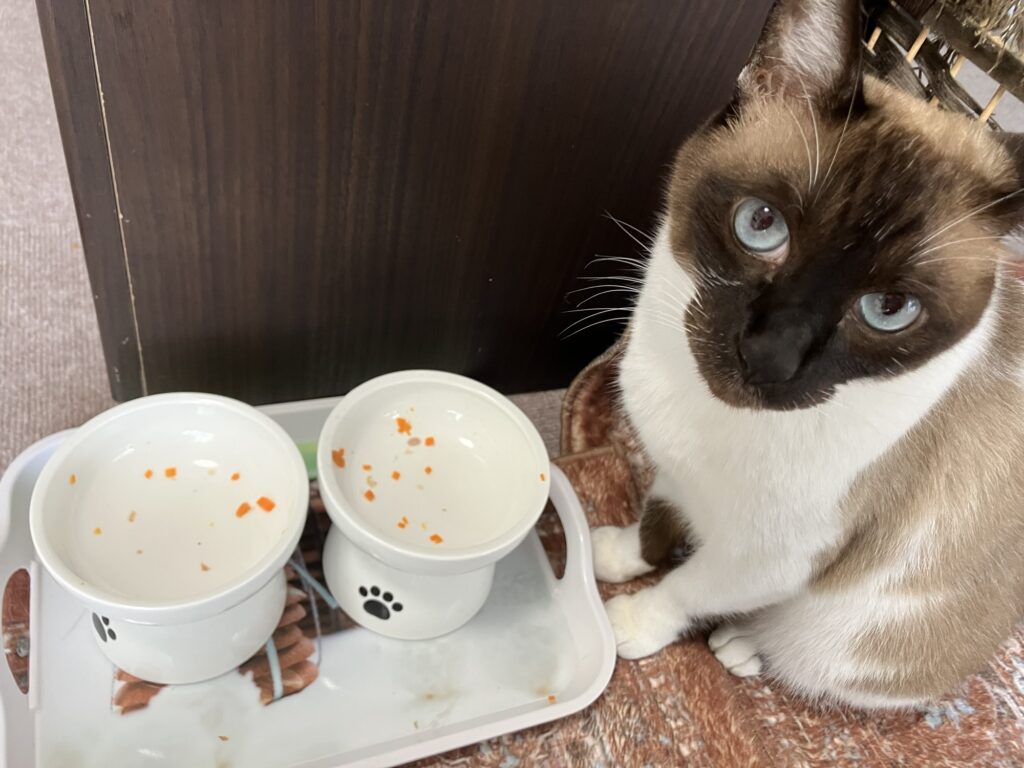動画にも撮ったのですが、ご飯をあげるときに弟猫の桃が「ママ」って言ったように聞こえて、ちょっと嬉しくなりました。